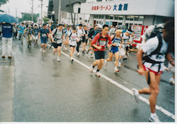 当時ゴールの鍋割山荘前に第一位で駆け込む選手